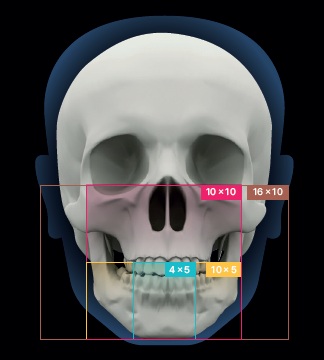 Kies precies het scanbereik dat u nodig hebt dankzij een ruim aanbod aan FOV-opties, van detailopnames tot volledige craniofaciale scans: